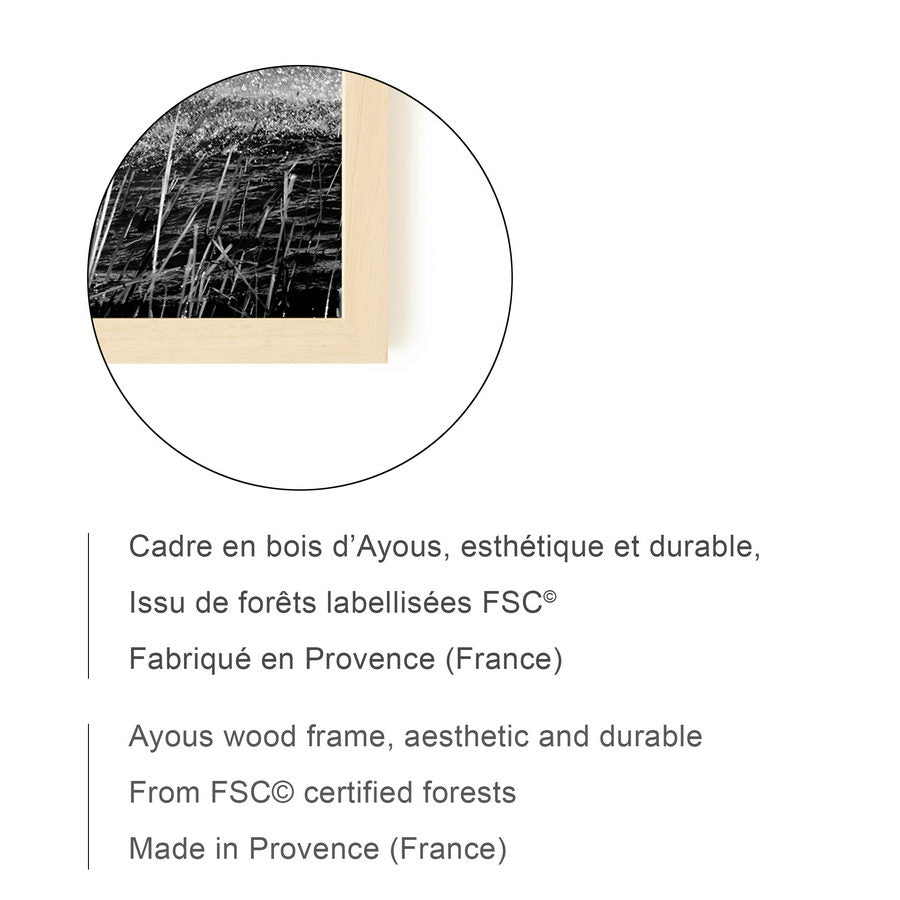 Photographie et cadres sont produits en France et montés dans notre atelier en Provence. Sans verre pour un rendu parfait