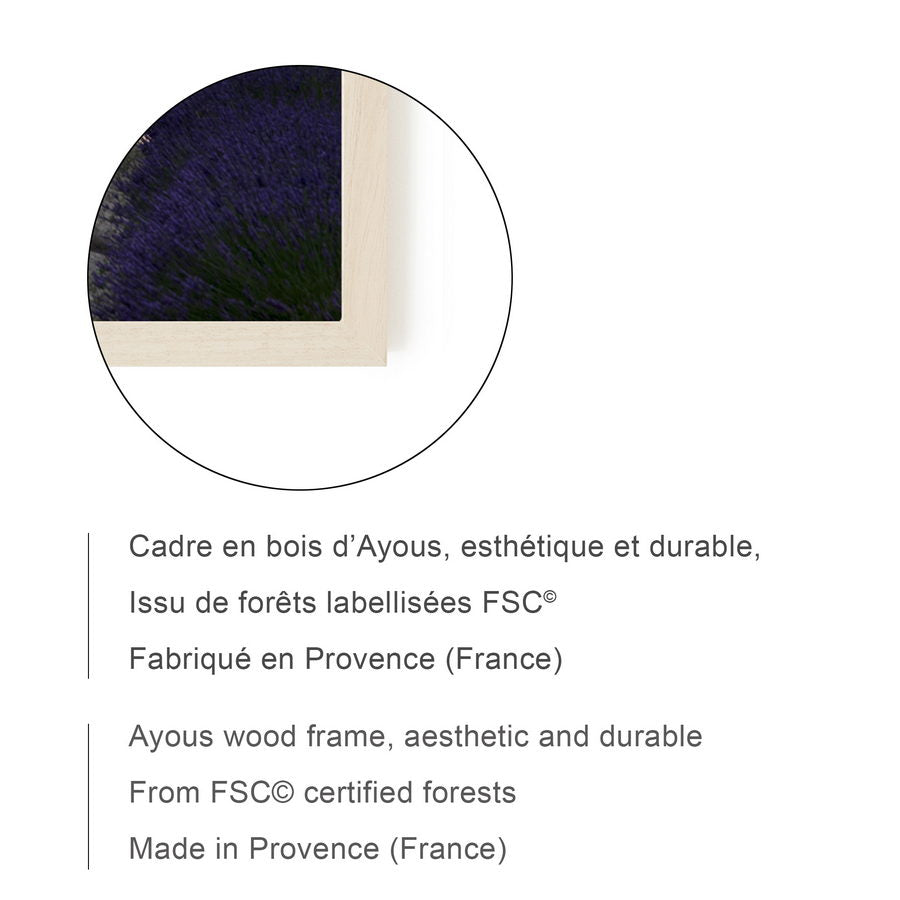Photographie et cadres sont produits en France et montés dans notre atelier en Provence. Sans verre pour un rendu parfait