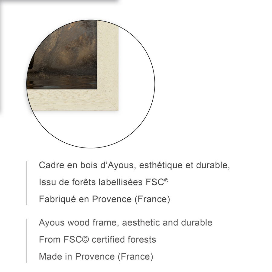 Cadre en très beau bois naturel d'Ayous, de format 24x18 cm, fabriqué en Provence. Bois issu de forêts labellisées FSC, label de référence de la gestion durable et équitable des ressources.