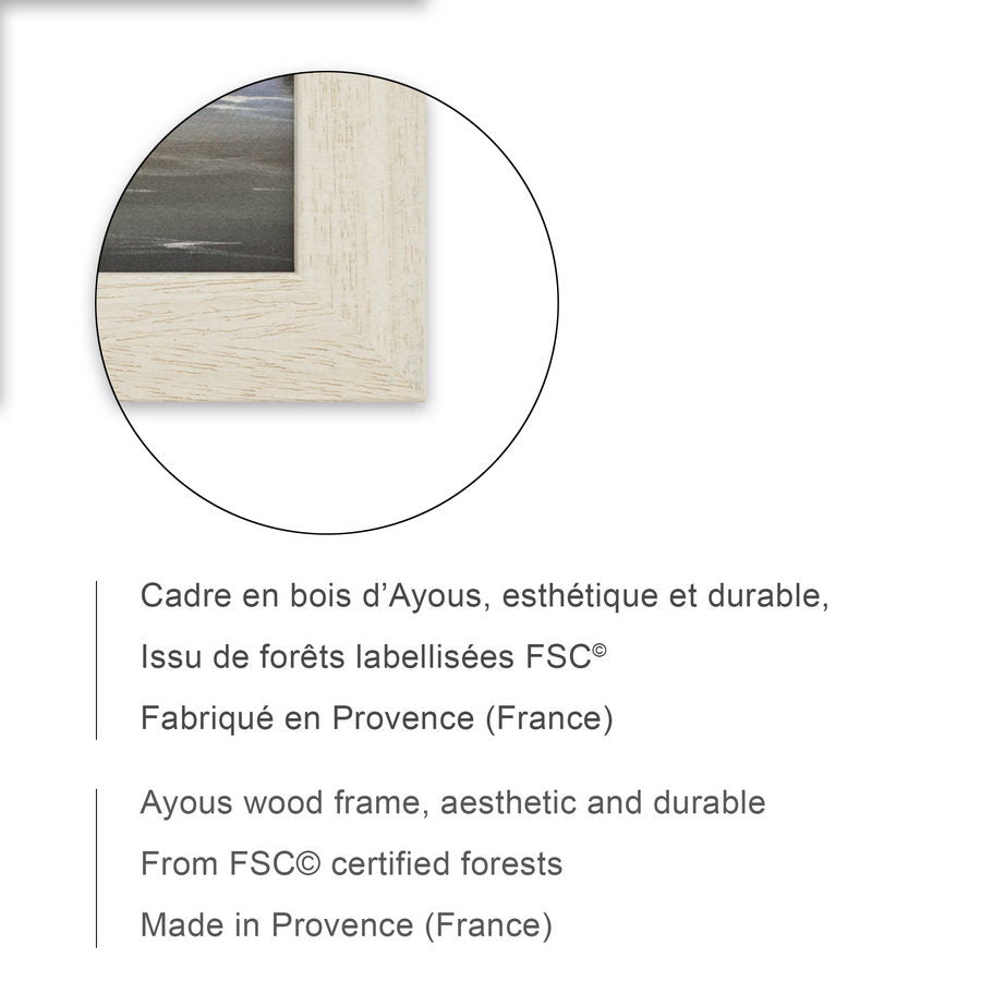Un bel objet de décoration conçu dans notre atelier en Provence. Cadre en bois naturel haut de gamme de format 24x18 cm, avec une reproduction fidèle d’une œuvre du peintre côté Claude Legrand, sur un papier d’art mat. A poser ou à fixer au mur au choix.